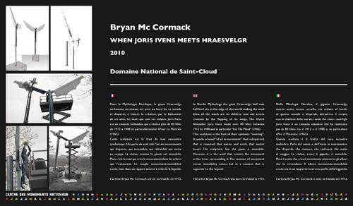 Création d’un visuel pour l’installation de la sculpture de Bryan Mc Cormack dans le Parc de Saint Cloud