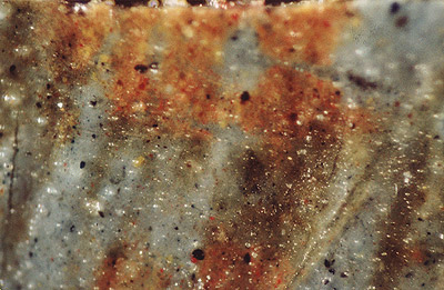 Prise de vue d'un prélévement de pigment sous microscope optique